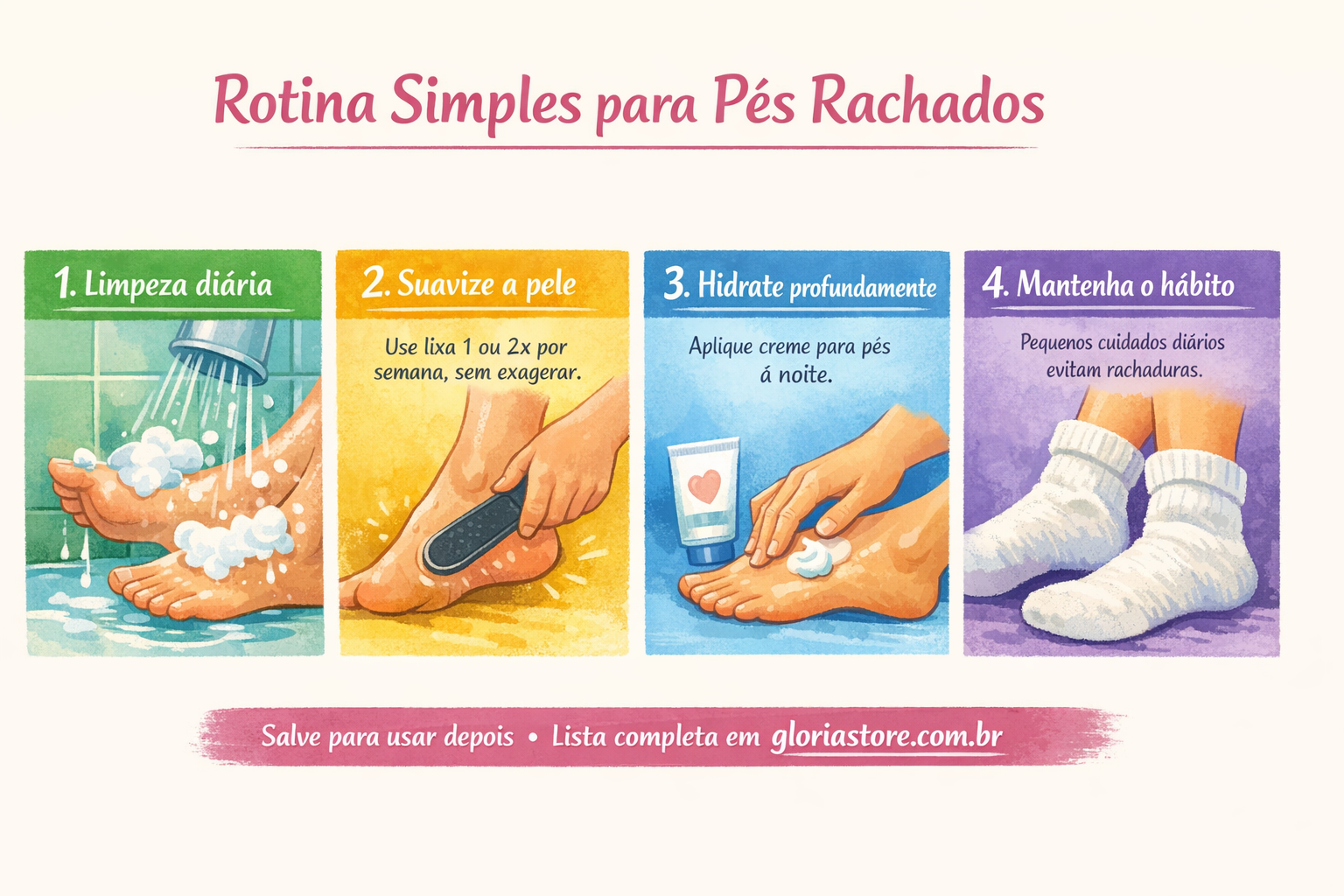 Mantenha o hábito – Pequenos cuidados diários evitam rachaduras.